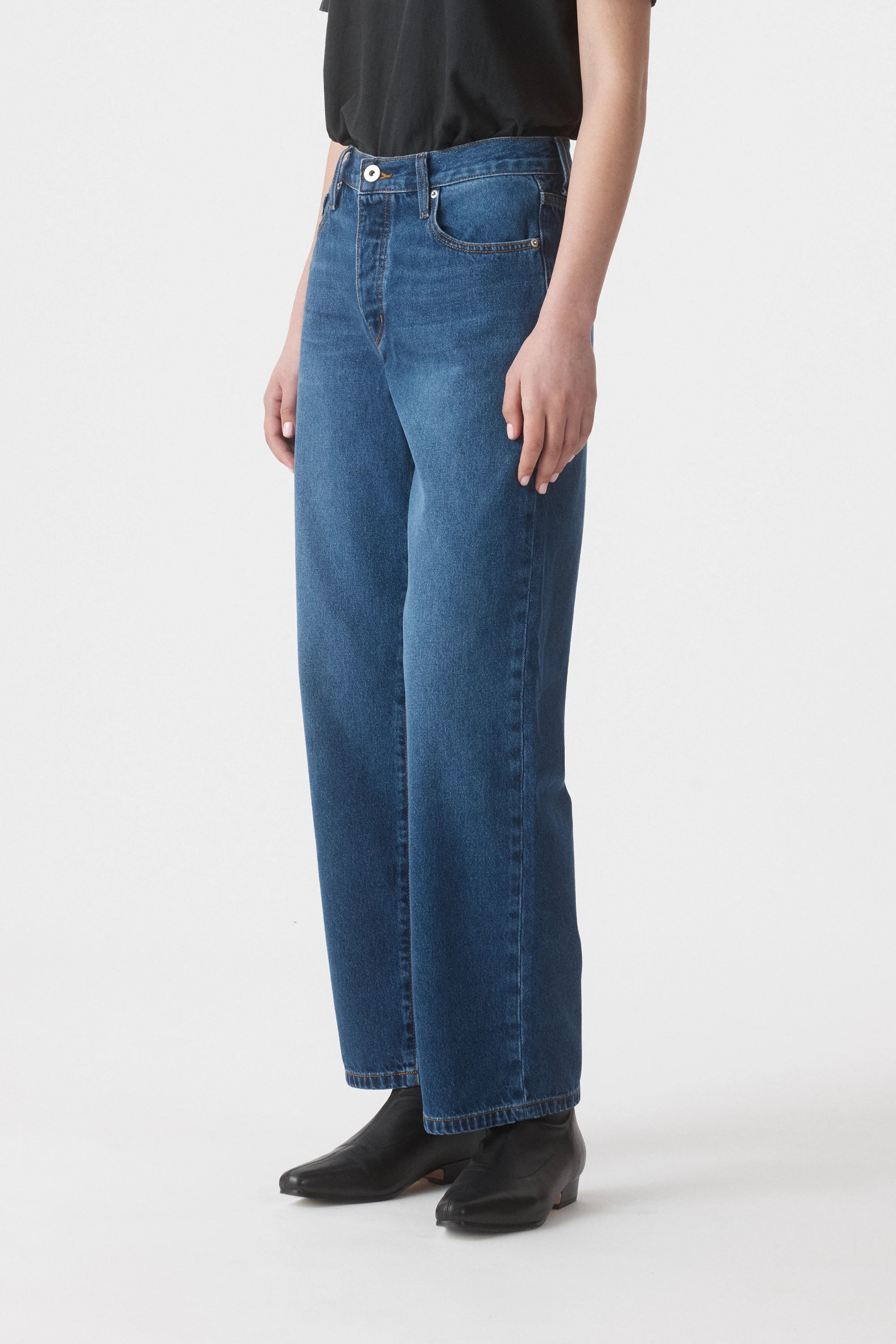 Our classic boyfriend jean. Rachel sits relaxed on the mid waist, falling straight through the leg, finishing at a cropped ankle length. Crafted in premium non stretch denim.